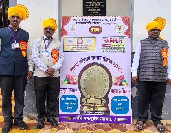 рд╕реНрд╡. рд╣рд░рд┐рд╢реНрдЪрдВрджреНрд░ рдЧрд╛рдпрдХрд╡рд╛рдб рдмрд╣реБрдЙрджреНрджреЗрд╢реАрдп рд╕рдорд╛рдЬрд╕реЗрд╡реА рд╕рдВрд╕реНрдерд╛ (рд░рдЬрд┐.), рдорд╣рд╛рд░рд╛рд╖реНрдЯреНрд░ рдпрд╛рдВрдЪреНрдпрд╛ рд╡рддреАрдиреЗ рдЖрдпреЛрдЬрд┐рдд тАЬрд░рд╛рд╖реНрдЯреНрд░реАрдп рд╕реНрдиреЗрд╣рдмрдВрдз рд╕рдиреНрдорд╛рди рд╕реЛрд╣рд│рд╛ 2025тАЭ рд╣рд╛ рдкреНрд░реЗрд░рдгрд╛рджрд╛рдпреА рдЖрдгрд┐ рдЙрддреНрд╕рд╛рд╣рд╡рд░реНрдзрдХ рдХрд╛рд░реНрдпрдХреНрд░рдо рд░рд╡рд┐рд╡рд╛рд░, рджрд┐. 26 рдСрдХреНрдЯреЛрдмрд░ 2025 рд░реЛрдЬреА рдбреЙ. рдирд┐рд░реНрдорд▓рдХреБрдорд╛рд░ рдлрдбрдХреБрд▓реЗ рд╕рднрд╛рдЧреГрд╣, рд╕реЛрд▓рд╛рдкреВрд░ рдпреЗрдереЗ рдкрд╛рд░ рдкрдбрд▓рд╛. рдорд╣рд╛рд░рд╛рд╖реНрдЯреНрд░рд╛рддреАрд▓ рдЕрдиреЗрдХ рдЬрд┐рд▓реНрд╣реНрдпрд╛рдВрдордзреАрд▓ рдорд╛рдиреНрдпрд╡рд░рд╛рдВрдиреА рдЙрдкрд╕реНрдерд┐рдд рд░рд╛рд╣реВрди рд╢реИрдХреНрд╖рдгрд┐рдХ, рд╕рд╛рдорд╛рдЬрд┐рдХ рдЖрдгрд┐ рд╕рд╛рдВрд╕реНрдХреГрддрд┐рдХ рдХрд╛рд░реНрдп рдХрд░рдгрд╛рд▒реНрдпрд╛ рд╡реНрдпрдХреНрддреАрдВрдЪрд╛ рдЧреМрд░рд╡ рдХреЗрд▓рд╛.